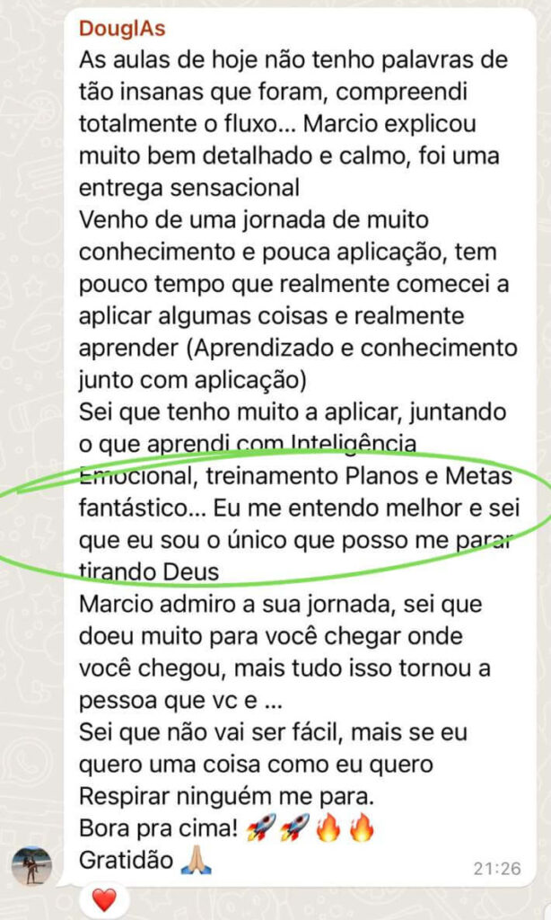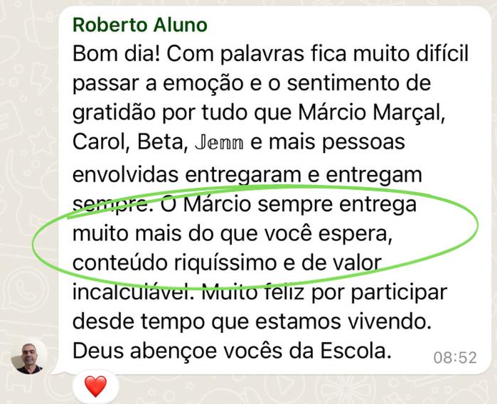 Além de todo o conhecimento que você vai encontrar na Escola de Vendas Digitais, o Marcio Marçal foi além pelo seu resultado.