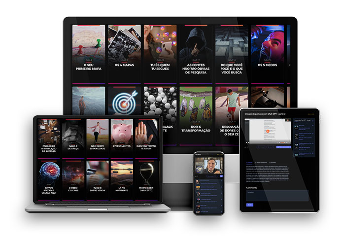 Você vai receber treinamentos de automação de WhatsApp, Instagram e E-mail. Vai aprender sobre funil multiplataforma, timing product, criação de produtos, criação de VSL e outras estruturas fundamentais sobre Psicologia, Filosofia e PNL aplicadas a vendas.